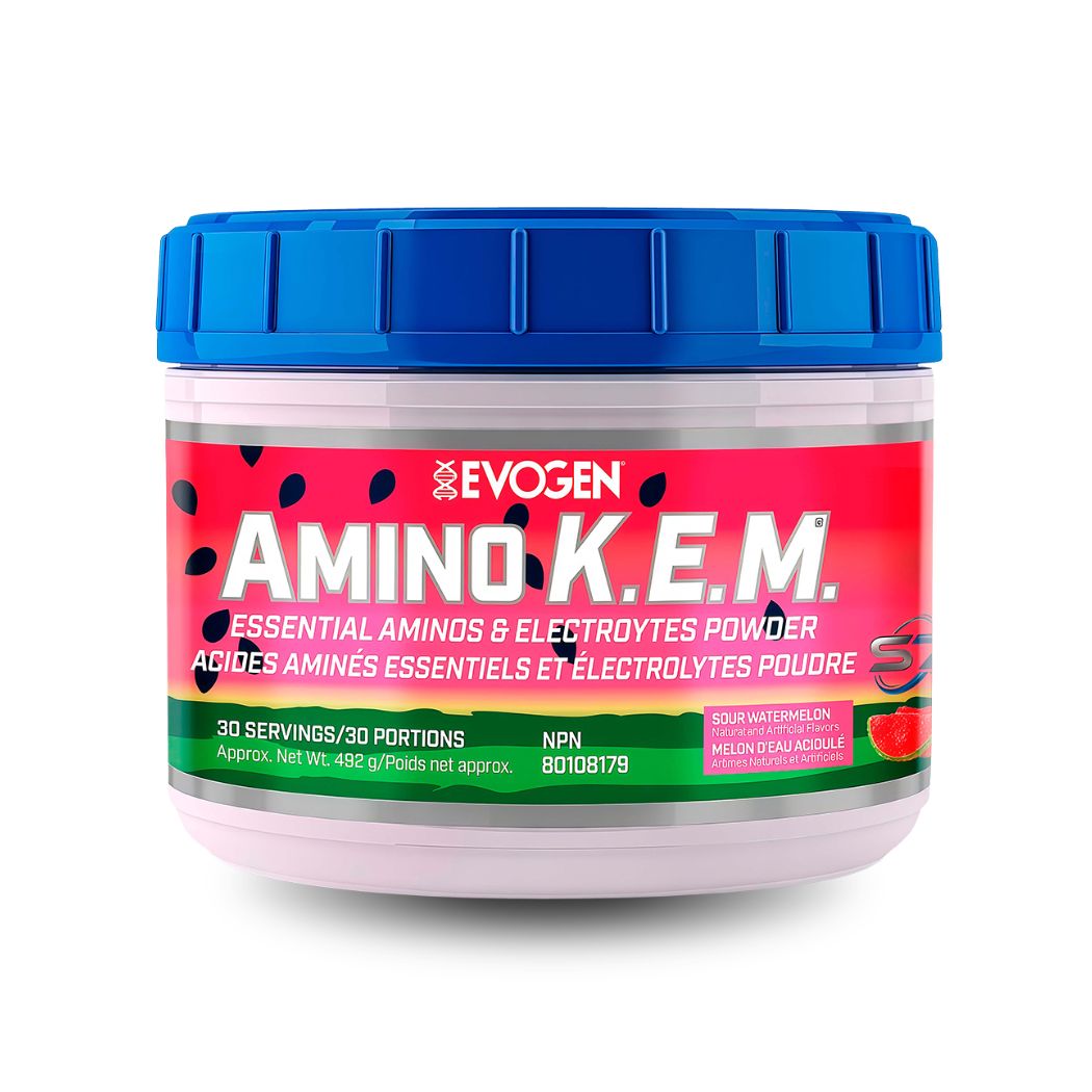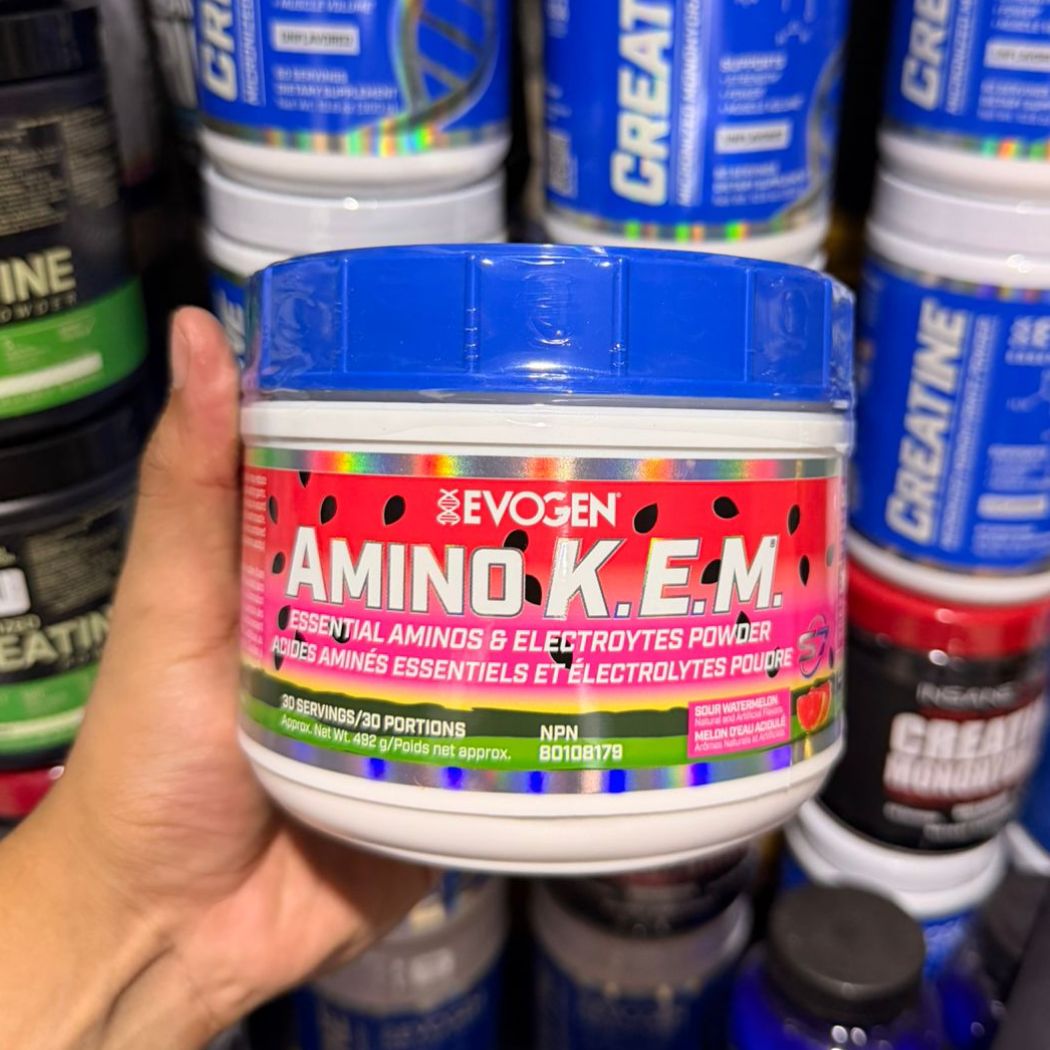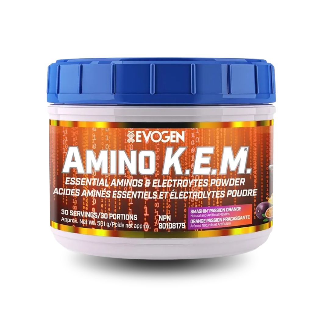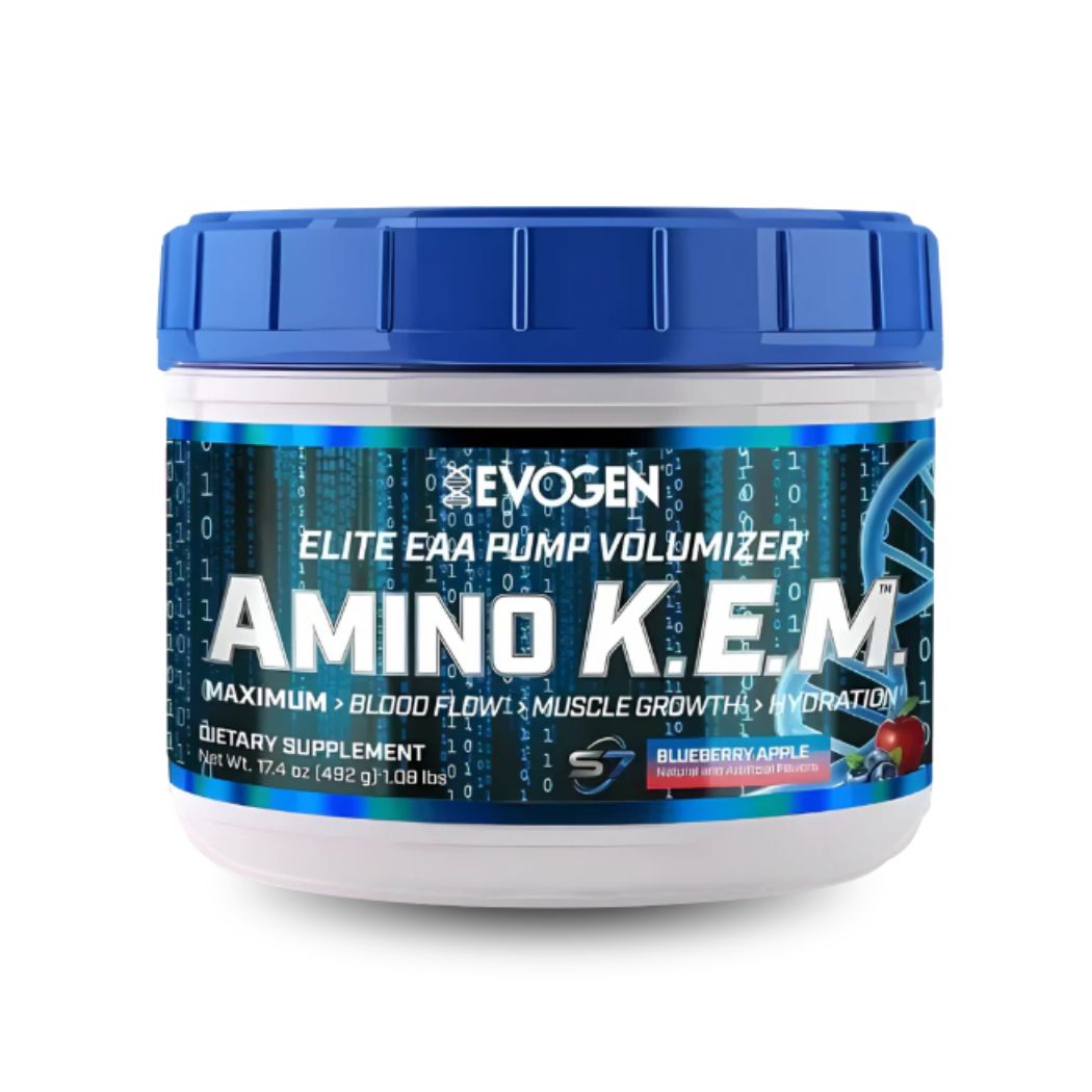 El Amino K.E.M de Evogen Nutrition es un suplemento en polvo que combina aminoácidos comúnmente utilizados en rutinas deportivas.